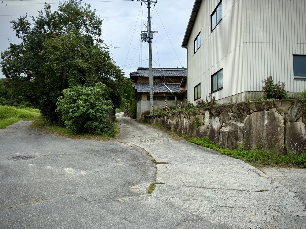 右手に民家、左手に大きな木、その間を通り抜けます。幅は軽自動車が余裕で通れるほどです。