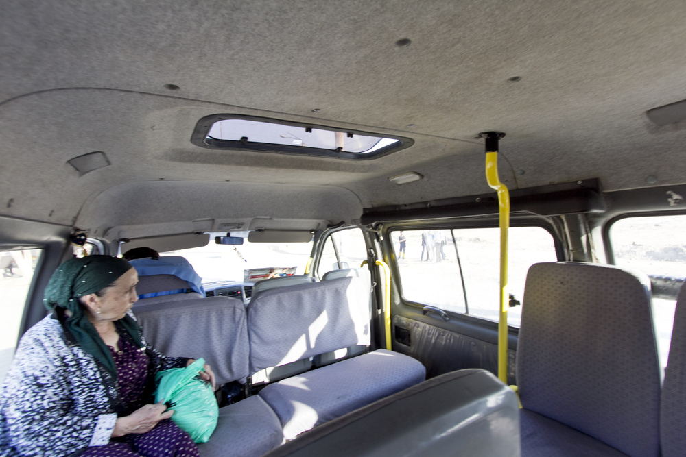 帰りは、北門付近でウルゲンチ行きの乗り合いバス(マルシュルートカ)を見つけました。バス停を探す必要もなく、地元の雰囲気を味わいながらスムーズにウルゲンチへ戻ることができました。